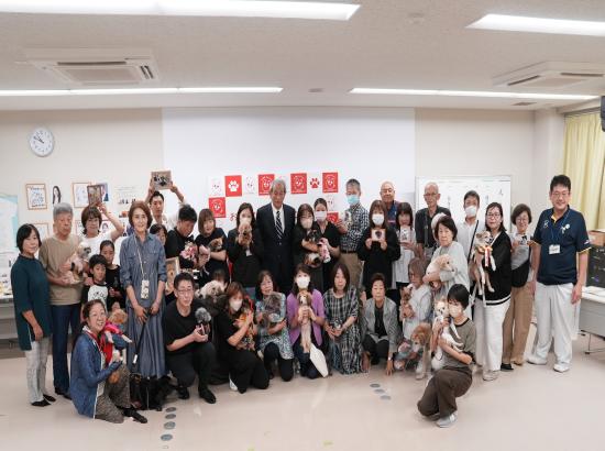 今年の長寿表彰は、過去最多頭数のご推薦をいたただき、全109頭のご長寿ワンちゃんネコちゃんを表彰することができました。当日は36組の方にご出席いただき、うち23頭が一緒に表彰式に参加しました。表彰頭数もですが、元気に同伴出席される組数も増加しており、長寿表彰を励みにまた1年元気に過ごせるよう頑張ります、とのお声も頂戴いたしました。